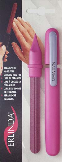 NailMaid, Ceramic Nail File, magenta case, Clip red, blister carded